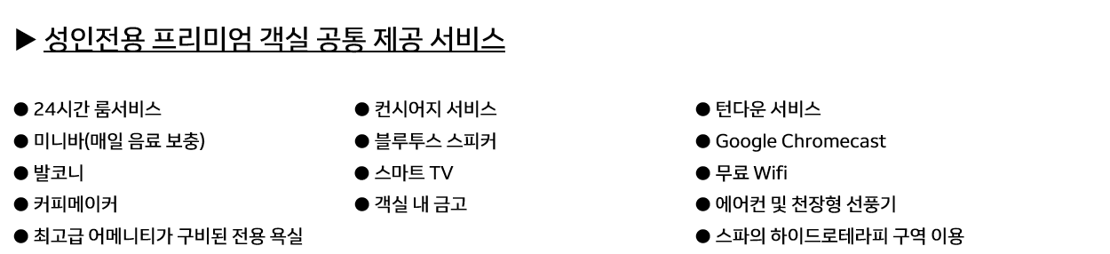 ▶24-hour concierge service: 필요한 것이 있다면 언제든 24시간 대기 중인 컨시어지가 친절하게 도와드립니다.